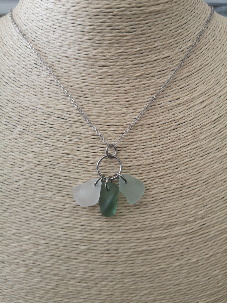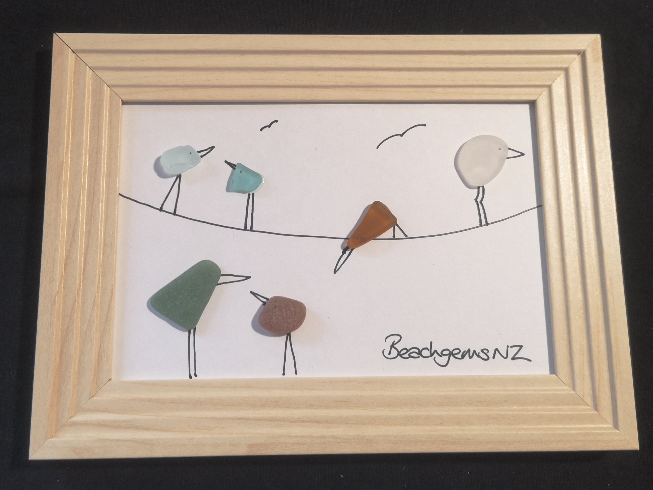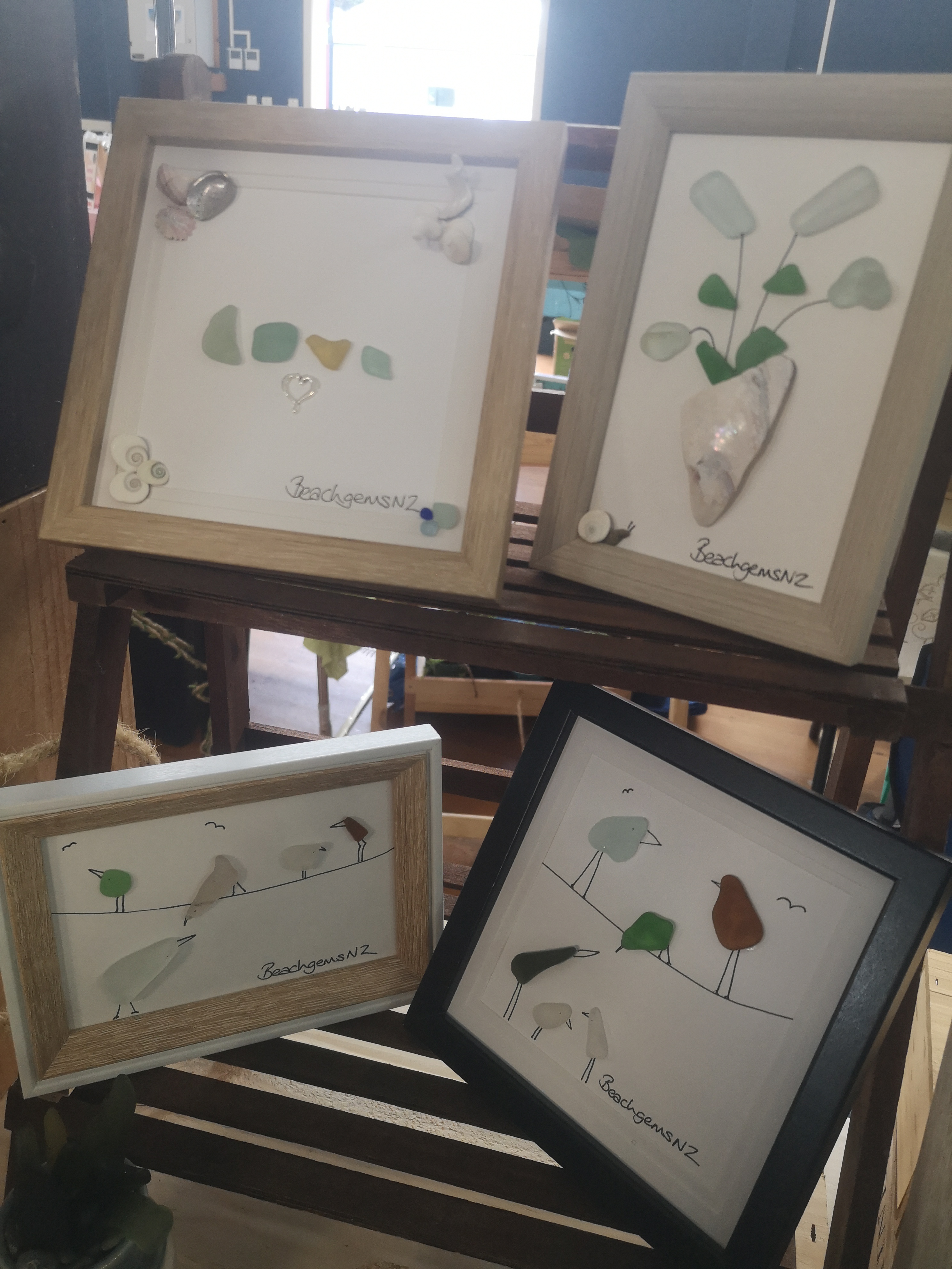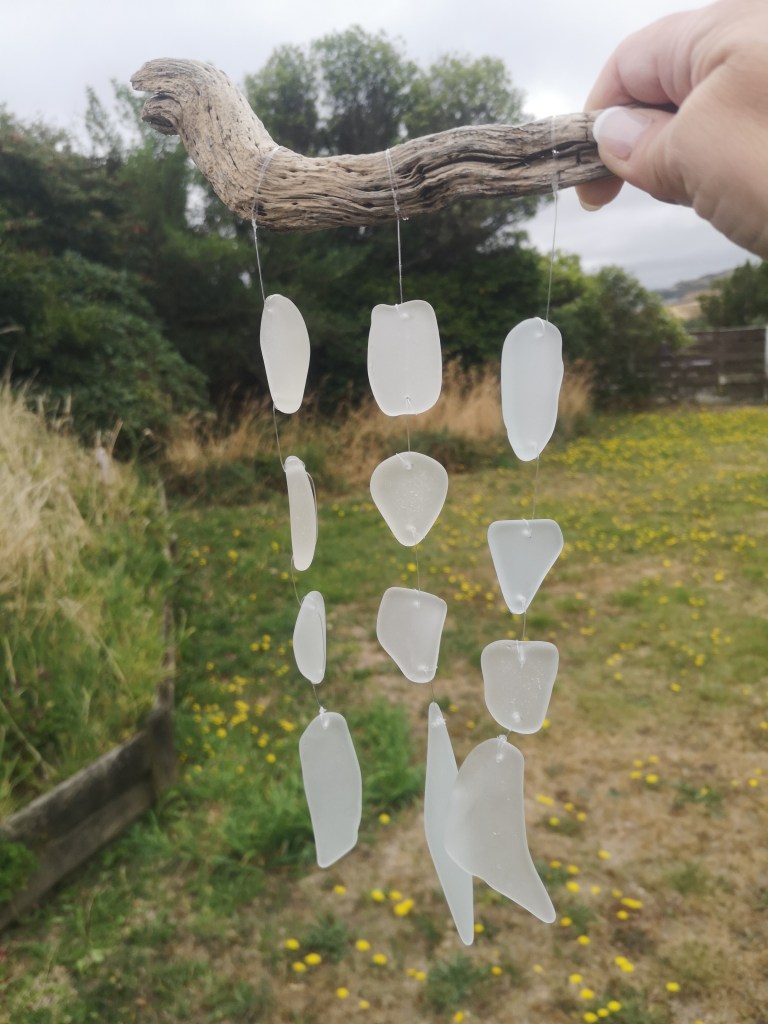 Below are examples of many pieces of seaglass we have found on wellington beaches made into beautiful art…necklaces, pictures, bracelets